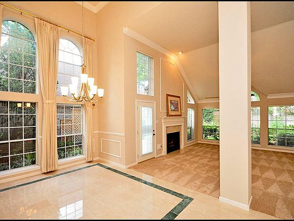 Beautifully maintained David Weekley home on a cul-de-sac in Cochran's Crossing! Outstanding location in the heart of the Woodlands, zoned to exemplary schools, close to parks, fine dining and shopping! Soaring ceilings, crown moulding, whole house water filtration system, extensive tile and hardwood flooring, built-ins, stunning trim work and abundant windows make this home light and airy. Island kitchen has upgraded Professional Thermador 6 burner cooktop, granite counters and cabinetry w/easy slide total access shelving; den with gas fireplace opens to elegant and spacious formal dining with chair rail and convenient pass through bar from the kitchen; master retreat plus another bedroom down; 1 bedroom up (has cedar storage closet) plus upstairs study could be converted to 4th bedroom with addition of a closet. 2 car attached garage w/epoxy floor; pristinely landscaped yard with recently replaced fence, productive orange trees and lawn irrigation system.