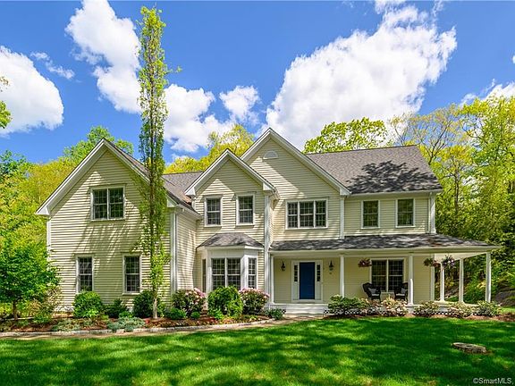 This spacious Colonial with a thoughtful floor plan on a very private lot has been impeccably maintained.The front entrance is loaded with charm with it's wraparound porch and sun-filled foyer. An open concept living room and dining room are on one side of the foyer, with an office offering beautiful views and a wall of built-in shelving on the other. The well-equipped kitchen is outfitted with natural cherry cabinets, granite counters, a center island, and high-end stainless appliances. The dining area has sliders leading to the deck. The kitchen opens up to the great room which lives up to it's name with a soaring vaulted ceiling, fireplace, and lots of room to gather. The master bedroom is quite spacious with it's sitting room, walk-in closet, and dual tray ceilings. The glass enclosed shower, whirlpool tub surround, floor, and double vanity top are all marble in this luxurious master bath. Three more bedrooms and a laundry room share the upper level. A guest bedroom has an en-suite bath and the 2 other bedrooms share a Jack and Jill bath. The lower level is fully finished with sliders that walk out to the private back yard with a sports court. All of this plus a whole-house generator and smart home features! The interior and exterior have been freshly painted in 2019. This beautiful property backs up the the Lower Paugussett State Forest offering miles of hiking and biking trails, a scenic waterfall and small sandy beach.