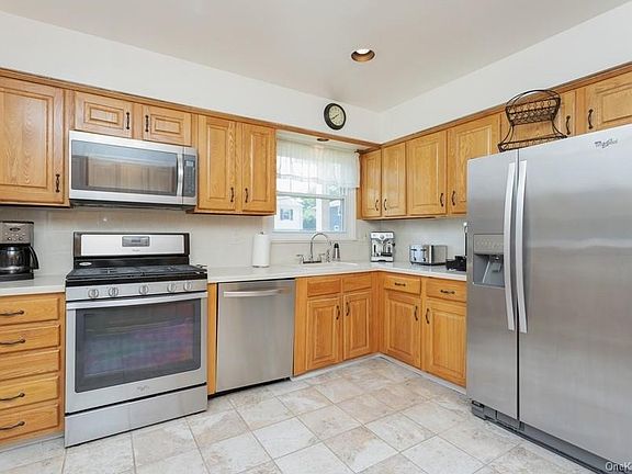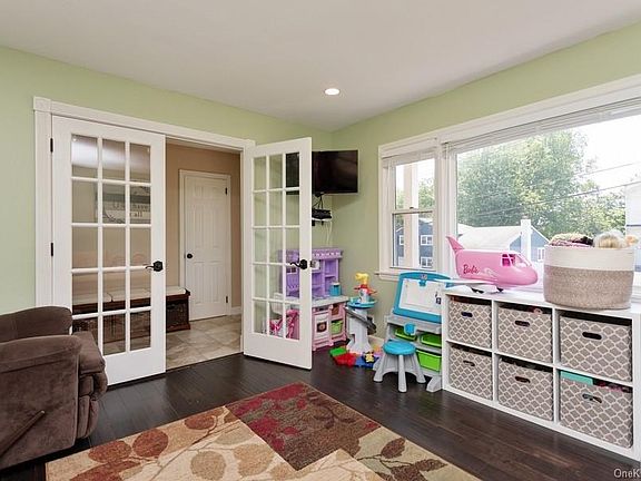 Welcome to 35 Rutledge Road! This move-in ready split level home features entry hall with French doors to den/office, kitchen with updated stainless steel appliances, Formal dining room, large living room with cathedral ceiling. Updated powder room. Large master bedroom, 2 bedrooms, beautifully renovated hall bath. Hardwood flooring. Large manicured level yard with deck down to patio with fire pit perfect for outdoor entertaining! Updates included new roof, new siding, new furnace, new hot water heater, updated windows, renovated bathrooms. Close to shopping and all transportation. Taxes with star rebate $15,800