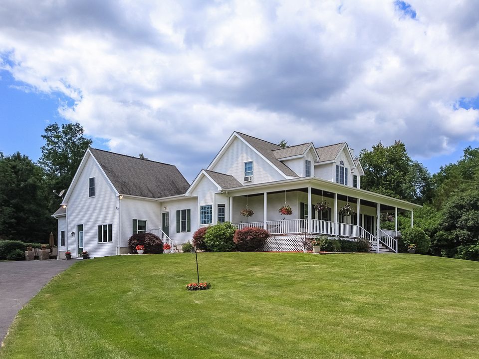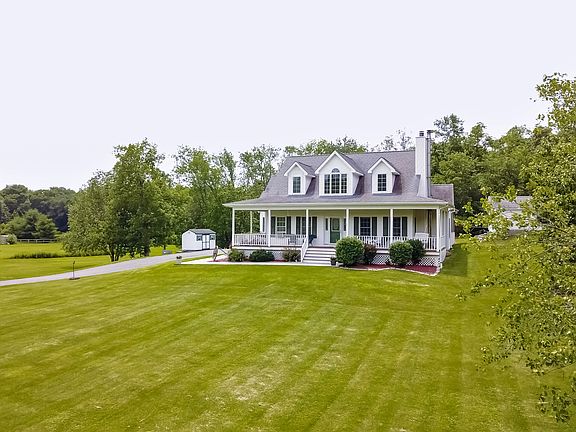 Excellent Airbnb potential! A clean, relaxed, peaceful home set back from the road where it is quiet. Master suite down, two identical bedrooms up. Main level of house has beautiful hardwood floors throughout. The kitchen boasts several updates, granite counters, & gas stove. Garage converted into a summer kitchen/family room, great potential for a mother/daughter or guest area. Fourth bedroom with bath is above family room addition. Huge screened-in porch, wrap-a-round front porch w/swing, deck, & stone patio allows plenty of room to entertain. Basement is partially finished with family space & exercise area, room for a workshop as well. Boiler new 2012, new well pump 2016. Laundry is on the main floor w/mud room entrance. Pond is stocked & aerated. Barn has electric/water/phone. Property has an underground drainage system & large garden plot. Barn & 3 additional out buildings make this a great place to run a home business from. Taxes do not reflect any star exemption.