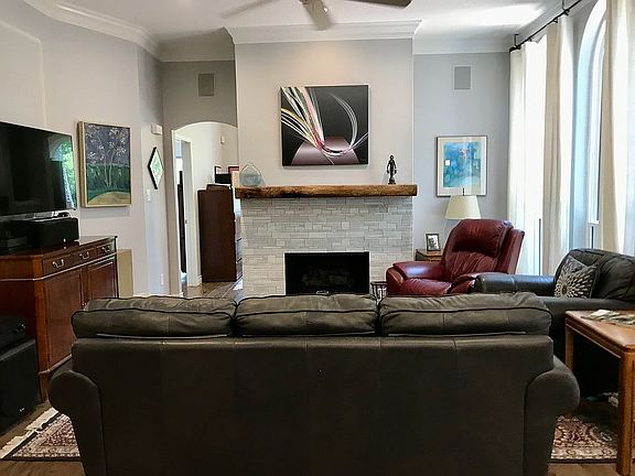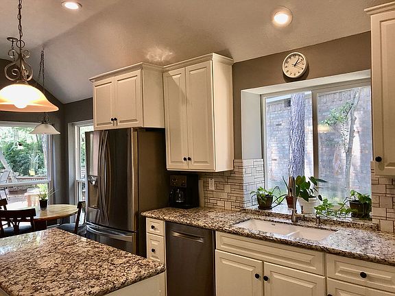 Beautifully renovated David Weekley patio home on large greenbelt lot in highly desirable Capstone Pines. Private backyard oasis with gorgeous saltwater pool & rock waterfall, expansive deck and lots of shade. This home features high ceilings and elegant crown moldings throughout. The remodeled kitchen includes granite countertops with lots of prep space, Bosch dishwasher and a wine fridge in the island. Double doors pass through to the formal dining room which has lovely views of the front garden. Floor to ceiling arch top windows flood the living room with light while the gas fireplace has a stone surround and live edge mantel. Fully remodeled master bath has a huge walk-in (roll-in) shower, his & her closets, marble topped vanity and separate linen closet. There is a separate study with expansive views of the backyard. The secondary bedroom is large enough to hold a Cal king bed plus nightstands and dresser & the bathroom is right outside the door offering plenty of privacy for guests. Energy efficient double pane windows were added in 2020. Fencing was replaced in 2019. The generously sized attic has loads of storage. This home lives large and its central location is incredibly convenient to all that The Woodlands has to offer. For more information, call 936.271.0635.