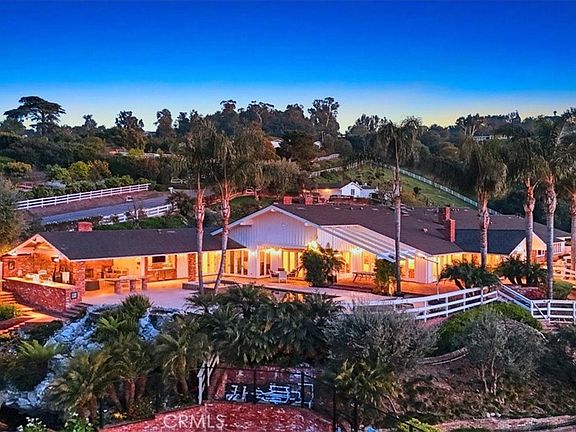 Nestled within the confines of a prestigious 24hr guard gated community, this impeccable ranch-style estate epitomizes luxury living with its unparalleled amenities and breathtaking surroundings. Meticulously built in 1989 with a subsequent multi million dollar remodel, this sprawling 8,250 sqft sanctuary sprawls over 5 acres of meticulously landscaped grounds, offering an oasis of tranquility amidst the hustle and bustle of city life. Upon arrival, a grand entryway adorned with a cascading waterfall sets the tone for the opulence that awaits within. A sprawling motor court, capable of accommodating 10 vehicles, greets guests with understated elegance. This estate boasts a plethora of recreational amenities, including a tennis court with pickleball and basketball overlays, a golf green with a sand pit, and a sparkling pool. A 2,200-gallon koi pond fed by 2 waterfalls adds a touch of serenity, while 4 built-in barbecues, 2 external fireplaces, 2 fire pits, and 3 TVs provide the perfect setting for outdoor entertaining. Entertainment options abound, with a media room, outdoor dining areas providing the perfect backdrop for gatherings. Sweeping city views of the entire LA Basin serve as a constant reminder of the amazing lifestyle afforded by this trophy property. There is a separate chef kitchen with 2 ovens/griddle/deep fryer,2 refrigerators, freezer, 3 bar fridges, 3 bar ice machines, 5 ovens and 12 range burners (both chef and family kitchen combined). Whether unwinding in the hot tub, indulging in a sauna session, or simply admiring the sunset from the comfort of the outdoor kitchen pavilion, every aspect of this estate has been meticulously designed. Orchard with 140 Trees with orange, lemon, avocado, fig, apple, & grapefruit and features such as a full gym, movie theater/game room, Lutron lighting, Creston System, wine cellar, and a safe room, this estate truly offers every amenity imaginable for the most discerning of buyers. Property boasts a 21-camera security system, a whole-house alarm supported by fiber-to-the-home internet access for the utmost in security and connectivity. 5 zone AC and heating allows each room to be controlled on its own. Amenities include a 4 car garage and a full professionally outfitted workshop and finished barn structure w/ external shed, full house generator, 2 laundry rooms, full house PBX phone system, two 100 gallon water tanks, water softener system, AV distribution system to serve virtually every room.