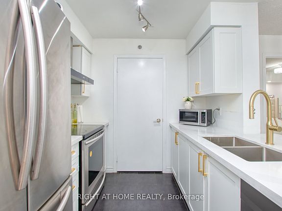Condo Living At its Best! South-Facing With A CN Tower View. Newly Renovated Kitchen with Beautiful Marble Countertops and new cabinetry. Open Concept unit with NEW Pot lights and light fixtures throughout. Huge Pantry room. Includes Premium Parking Spot & Premium Large Locker. Steps to public transit, library, school, Lawrence plaza, Yorkdale mall, HWY 401 & Allen Rd.