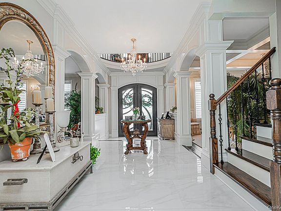 Modern appliancesMarble fireplacesIndoor speakersOutdoor kitchen with grillUnderground poolWooded deckArchitectural cross beamed ceiling