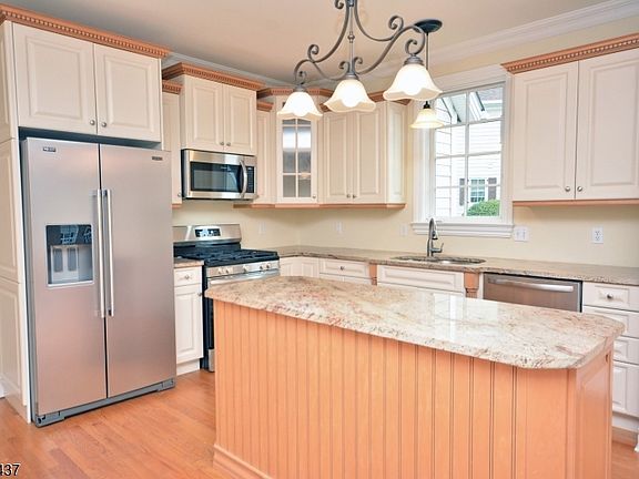 Welcome to Lakeside Villas at Watchung, a serene 55+ community offering privacy, yet just across from the picturesque Watchung Lake park, Water & Wine, (a renowned gourmet restaurant,) and Pourtuga, (the town coffee shop). This spacious townhome is the premier floor plan in Lakeside Villas and has been refreshed and updated with new carpet and stainless steel appliances. It's an end unit, with the convenience of first floor living, that includes primary and second bedrooms on first floor - plus a fully finished grade-level space. The main living level is an open, light and bright living area with French doors to a private balcony, wood floors and transom bay windows. The Kitchen is well appointed with a center island and granite counters. The primary bedroom has a private balcony, ensuite bath, and oversized walk-in closet. The second bedroom has a transom window and double closet. A full bath with shower, a laundry, and access to the garage add to the main level's appeal. The grade-level area features a family room with bay windows, a large third bedroom, walk in closet and the third full bath. Enjoy your lifestyle in this exceptional home that combines elegance, functionality, and comfort.