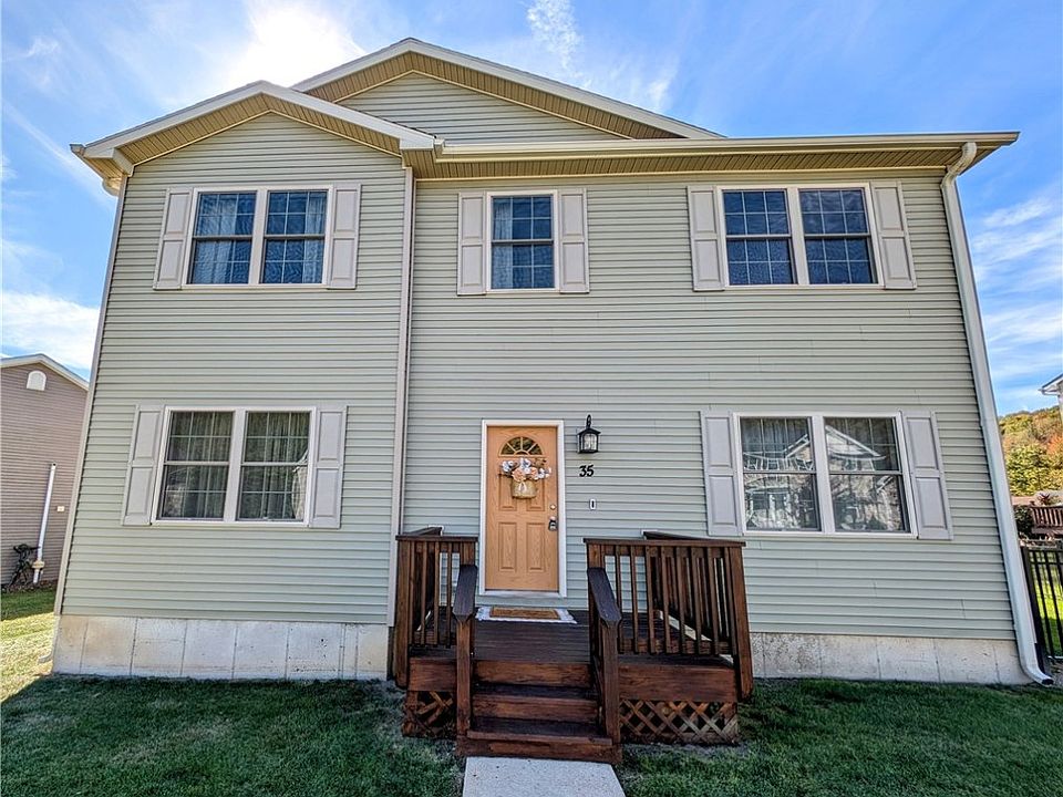 Welcome to 35 Schoolhouse Lane, a beautifully maintained newer home located in Oneonta’s highly desirable West End. Known for its friendly neighborhood feel and unbeatable convenience, the West End places you within walking distance of Greater Plains Elementary School, the town pool, tennis courts, shopping, dining, and entertainment. Designed for modern living, the home features an inviting open-concept first floor that seamlessly blends the kitchen, dining, and living areas, perfect for both everyday living and entertaining. This spacious residence offers four bedrooms, three full baths, and two half-baths, including two primary suites; one on the main floor and one upstairs. Each suite features a private bath with stand-up shower, while the upstairs suite adds a luxurious soaking tub and a massive walk-in closet. Many rooms have been refreshed with new carpet, adding warmth and comfort throughout. The interior is filled with natural light and showcases generously sized rooms, a cozy gas fireplace, and elegant hickory cabinetry throughout. The fully finished basement expands your living space with a gourmet kitchen boasting high-end cabinetry, quartz countertops, and stainless steel appliances. This level also includes a half bath and an expansive living area perfect for a media room, game room, or home office. Modern updates include a brand-new high-efficiency Rinnai boiler and central air conditioning, ensuring year-round comfort and energy efficiency. Outdoors, enjoy a partially fenced yard, a beautiful patio ideal for gatherings, and a handy shed for storage of lawn equipment, outdoor furniture, or seasonal items. The paved driveway was freshly resealed this summer, adding to the home’s curb appeal. Combining newer construction efficiency, thoughtful design, fresh updates, and the unmatched lifestyle of Oneonta’s West End, this property is an exceptional opportunity in today’s market.