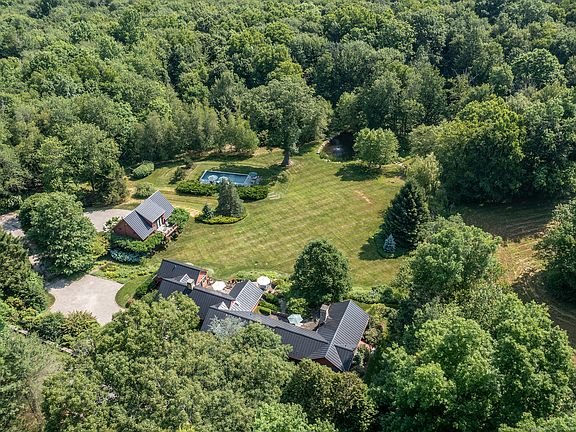 Subtle Sophistication in A++ Roxbury Locale. Perfectly sited in an estate area of Roxbury on a quiet country road, this renovated country cottage exudes understated elegance & modern comfort. Main house offers one-level living & turn-key perfection, w/chic kitchen featuring custom cabinetry, stainless steel appliances, it flows seamlessly into the dining room. Dramatic great room w/floor-to-ceiling glass & fireplace anchors the living spaces, opening directly to large deck for effortless outdoor entertaining & picturesque views of the grounds. There are 4 ensuite bdrms, incl a stunning 1st-flr primary suite w/sitting room, gas fireplace, 2 fully built-out walk-in closets, & French doors leading to a private terrace with outdoor fireplace. Cozy library/den with built-ins and a versatile lower-level bonus space are ideal for an art studio or private home office. Add'l highlights incl a steam shower, smart-home features, radiant heat w/hydro-air backup, 2 washers & dryers. Dramatic post-and-beam guest house w/ vaulted ceiling, balcony, & full kitchen sits above a 2 car garage and prep kitchen, offering a private retreat complete w/its own washer/dryer. The grounds are exceptional-mature trees, stone walls, a pond, sweeping lawns, and lush gardens surrounding a heated gunite pool. Expansive porches and terraces provide seamless indoor-outdoor living, ensuring total privacy. Minutes from The Mayflower Inn, town center and close to acres of Roxbury Land Trust. 90 min to NYC.