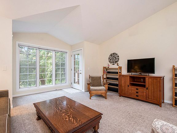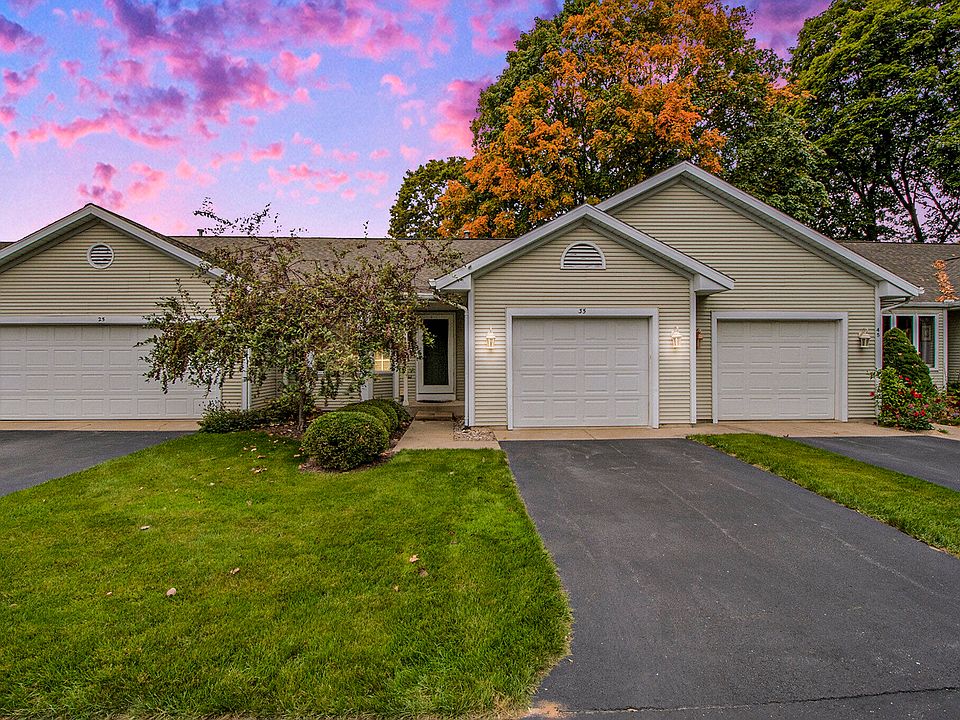 This beautifully maintained unit boasts a kitchen with stainless steel appliances, sleek granite countertops, and a bright, inviting eating area. The spacious living room features stunning cathedral ceilings, offering a grand, open feel. On the main floor, you'll find the primary bedroom and bathroom, as well as a convenient laundry area. Step out from the great room onto a large private deck, perfect for enjoying the peaceful and scenic surroundings. The walkout lower level offers a versatile recreation room with a wet bar, an additional bedroom, and a full bath—ideal for guests or extra living space. Nestled in a quiet, picturesque setting near the new Village of Ada, this unit also provides immediate access to Carl Creek Crossing Preserve, where 8 acres of beautiful trails await. Don't miss this exceptional opportunity!