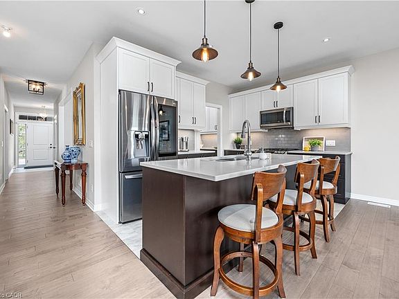 MODERN BUNGALOW BACKING ONTO TRANQUIL GREEN SPACE WITH WALKOUT BASEMENT WITH ALL FURNITURE INCLUDED! Welcome to a home that feels like a retreat every single day. Tucked away in a peaceful, family-friendly neighbourhood, this beautifully crafted Rinaldi-built bungalow blends modern design with everyday comfort. Whether you're downsizing or just starting out, this thoughtfully designed home delivers the space, style, and serenity you’ve been looking for. Step inside to a bright, open-concept layout where natural light pours through large windows, highlighting the high-end finishes and seamless flow of the main level. With laundry, 2 spacious bedrooms and 2 full bathrooms on the main floor, everything you need is right at your fingertips—no stairs required. The elegant kitchen opens into a generous living and dining area, perfect for gatherings or cozy nights in, while the raised, covered patio extends your living space outdoors. Sip your morning coffee overlooking a peaceful pond and lush green space—your private backyard sanctuary. Downstairs, a fully finished walkout basement adds incredible versatility. An additional bedroom and full bath make it ideal for guests, teens, or extended family. There’s plenty of room for a home office, rec room, or even a gym—this lower level adapts to your lifestyle. Set on a premium lot and surrounded by nature, the property offers both privacy and community. Stroll through nearby parks, enjoy a short drive to local schools, or head to the Seaway Mall or big box stores just minutes away. Commuters will love the easy highway access, making travel a breeze. This is more than a house—it’s a lifestyle of ease, connection, and natural beauty. Don't miss your chance to own a home where every detail is designed for comfort, function, and joy.
