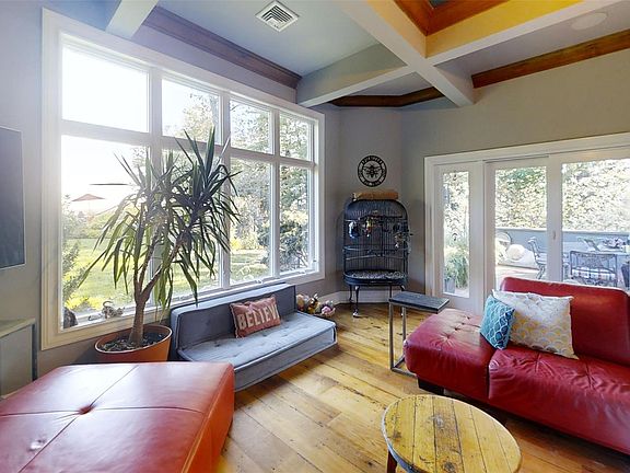 Outdoors, the property is a sanctuary of natural beauty and sustainability, with organic, pesticide-free landscaping, blueberry and blackberry bushes, fruit trees, and raised garden beds. A custom travertine patio, bluestone porch and walkways, and a handcrafted stone wall and staircase create an elegant setting for entertaining or simply enjoying the view.