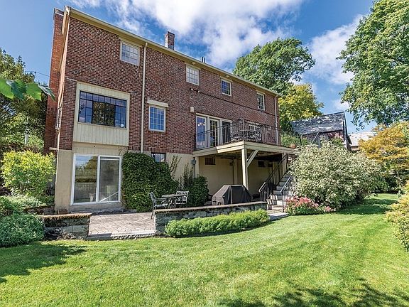 Elegant Brick Chestnut Hill home with period detail and lovely open kitchen family room offering amazing sunrises and seasonal city views. Enjoy 4th of July fireworks from the large mahogany deck located off the kitchen and family room. Gracious entry foyer with curved staircase to the second floor. Living room features natural wood beam ceiling and large fireplace. Formal dining room and lovely sunroom with southeast exposure to enjoy morning coffee completes the first floor. Four very generous size bedrooms on second level with two full bathrooms. Laundry located on both first floor and basement levels. Lower level family room with large windows, handsome fireplace and hardwood flooring. Direct access from basement to back yard, garden room and oversize two car garage. Replacement insulated windows, a heated driveway and professionally landscaped gardens with beautiful established plantings enhance this special home. Close to Longwood Med Center, Golf course and shopping.