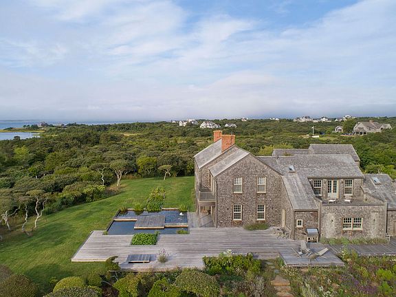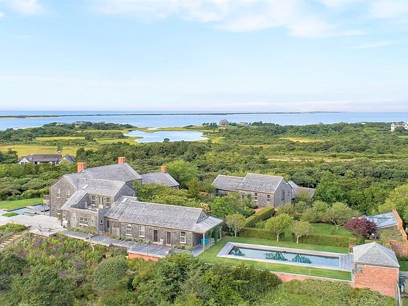 Stunning and secluded estate nestled within one of the most private and desirable areas on Nantucket Island. The home was built to an exacting standard and features a main house, guest cottage, staff quarters, two-car garage, pool/pool cabana with sauna, and greenhouse. The buildings are centered around an enclosed walled English perennial garden and orchard. These are further complemented by carefully planted grounds and walking trails. Nearly every room in the main house was designed and sited to maximize views and offer a seamless extension to the outdoors via Ipe decks and balconies. Everywhere you look there is an interesting design element to be enjoyed, whether it be an architectural detail or artistic accent. These are enhanced by the finish detailing which has been executed to the highest standards. The property is in excellent condition benefitting from full-time staff since built, and is of a caliber not often seen on the island. Surrounded by over 50 acres of conservation property and overlooking an additional 20.