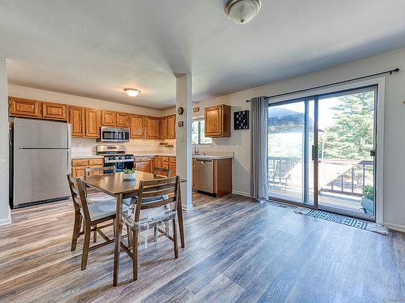 You will love the feeling of privacy in this home! Welcomed by a comfy large living room with a wood burning fireplace and large windows to bring in the beautiful sunshine on any day. A large kitchen that is equipped, and has a decent size eating area for dinners. There is a half bath on the main level and sliders to a nice deck. The Upstairs you'll enjoy two large bedrooms with tucked in spaces for additional storage needs all year round. A full bathroom is located on the upper level. Basement full with a nice quaint relaxing feel. Lots of parking, friendly community. One dog or cat is allowed. These condos are self-managed. HOA includes roof, snow, all landscaping, decks, etc. Don't let this low maintenance, move in ready home pass you by! Home is selling AS-IS.
