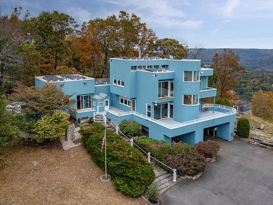 It's All About the Views! Surrounded by lake views, this stately Contemporary, set on a private acre plus an additional lot (.82 acs), at the end of a cul-de-sac, is just waiting for your customization. This incredible setting hosts this 3 bedroom,2.5 bath custom designed home with multilevel wrap decks & balconies and an oversized bonus room for great family fun center or studio for the artist/photographer. An open plan showcases. slate floors, custom built-in cabinetry throughout, a great room open to dining room and efficient galley kitchen topped with granite. A second floor primary suite offers a large, walk-in closet, loft sitting area with desks & bookcases, full bath w/ marble counters, another half bath, balcony & ultimate views! Stone walls encircle the home site & meandering paved drive plus additional parking area that can house 10 -12 cars, 2 sheds & even a chicken coup. An idyllic, serene setting in the sought after lake community of Candlewood Lake Estates with scenic beaches on Candlewood Lake and swim in crystal clear Green Pond. Optional dock available for an extra fee. Close to town center, New Milford shopping & an easy NY commute! Come and discover this unique lake front retreat! A One of a Kind with an opportunity to upgrade & add on to make it the home of your dreams! Low taxes, full solar runs entire house, generator, ultimate privacy & views! also includes address 102 Old Rd, New Fairfield, CT.