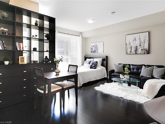 Welcome to this stylish and affordable studio apartment that gives you the chance to own your own home rather than continue paying rent. Perfect as a starter property or investment, this unit combines comfort, convenience, and value in one of the citys best-priced communities.Inside, youll find a smart layout with space by the window for your bed, a cozy living area for your couch and TV, and a wellequipped kitchen featuring plenty of cupboards, granite countertops, a dishwasher, stove, microwave, and 33-inch fridge. The home also offers geothermal heating and cooling, a spacious 4-piece bathroom, in-unit laundry with space for a stackable washer and dryer, and no carpet throughout for easy cleaning and modern style.This ground-level unit is wheelchair accessible with a quick and easy exit, making it practical for all stages of life.The building also offers fantastic amenities, including a nicely equipped gym, a beautiful party room, and a large rooftop patio with spectacular lake viewsperfect for relaxing, entertaining, and socializing.Dont miss this opportunity to step into homeownership with a property thats modern, accessible, and affordable.