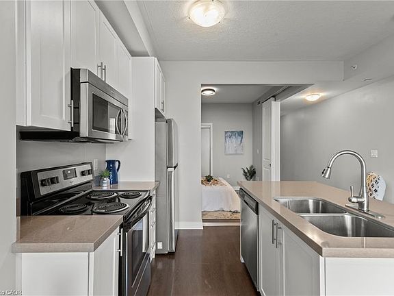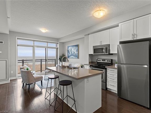 Imagine waking up to your own waterfront view! This bright 1 bed, 1 bath unit offers open-concept living with stainless steel appliances, in-suite laundry, and a private balcony just steps from Lake Ontario. Enjoy underground parking, a storage locker, and access to top-tier amenities including a rooftop terrace, gym, and party room. Located in the beautiful Waterfront Trails building, you're moments from trails, parks, lake Ontario, and easy access to the QEW. Perfect for first-time buyers, downsizers, or investors!