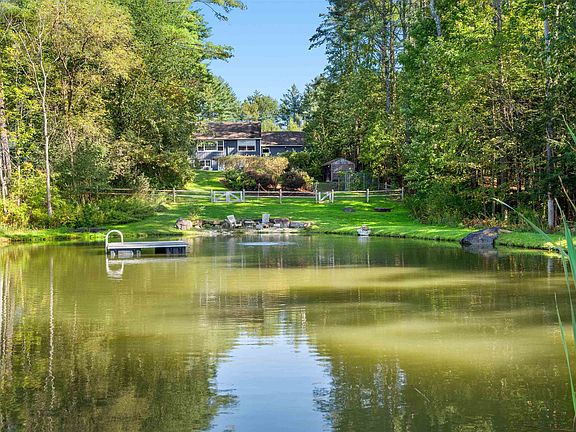 This immaculately maintained midcentury ranch is not one to miss! With touches of cottage influence, this home is full of understated charm. Inside the front door is the mudroom/foyer that is at once attractive and functional. Look straight ahead to the sun soaked living room complimented by a handsome fireplace and plenty of windows to take in the gorgeous views. The living room is open to the renovated kitchen, with many delightful details such as cherry cabinets, stainless appliances, and a lovely dining area. A 3/4 bath with laundry and spacious bedroom suite complete the first floor. The walk out lower level features two bedrooms and a study, along with a 3/4 bath. Step out onto the private deck and experience the serenity of the landscaped backyard with large mature perennials leading to a beautiful pond located down a gently sloping hill. The pond is deep and great for swimming and features a sweet little beach and dock. Enjoy sunsets from the pond, the deck, or while relaxing inside with your evening meal. Fenced in yard for peace of mind with pets and children. At the front of the home, the thoughtful landscaping and unique pass thru view add character and curb appeal galore. Just minutes from all downtown amenities, schools, I-89. A wonderful place to call home.