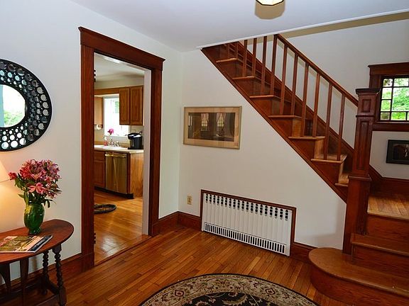 Enchanting 7 Room, 3 Bedroom Cape Situated on a Fabulous Wooded Level Lot; Just a Short Distance to Tangerini Farm! Home Features Include Hardwood Floors T/O, All New Interior and Exterior Paint, Replacement Windows, New Asphalt Driveway and Detached 20'x24' Heated Garage Space Suitable for Studio or Office with Separate Entrance. Bright Open Eat-In Kitchen Features Solid Oak Cabinetry, Butcher Block Prep Area, SS Appliances and Slider that Opens to a Large Freshly Painted Deck Overlooking Wonderful Wooded Back Lot. Interior of the Home Features Gum Wood Trim and Molding, Grand Foyer, Turned Staircase & Stained Glass Window; All Adding Extra Charm and Lovely Period Details. The Full Bath Features a New Pedestal Sink and Toilet with Claw Foot Soaking Tub and Bead Board Walls. Family Room and Living Room Are Open with French Doors Leading to Bonus Sitting/Sun Room. 3 Bedrooms on Second Floor All Feature Gorgeous Hardwood Flooring and Ample Closet Space. Covered Porch is an Added Plus!