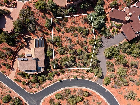 Premier elevated luxury home site with awe-inspiring sweeping close-up and distant views of Sedona's red rock monoliths and mountains, nestled on a quiet cul-de-sac in prestigious Jordan Park! Private access to miles of hiking/biking trails in the forest and walkable to the best restaurants in Uptown Sedona. At Jordan Park, lots are highly sought after not only for their exclusivity but for the common area that envelopes each site providing an added buffer from neighboring property. Underground utilities available - natural gas, electric, water and sewer. Seller has a topographic survey and a site - floor plan for a two level home capturing the stunning red rock views, 3650 sf main level and 1890 sf lower level plus 3-car garage, pool, spa and outdoor terraces, see the attached documents.