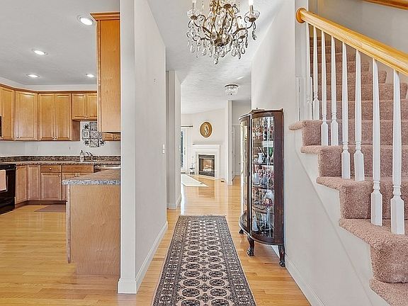 The Village at Stone Ridge...Westford's sought-after 55+ community! This move-in ready unit features a formal living room with corner fireplace, a fully-applianced kitchen (newer stainless steel dishwasher) with a sunny dining area, a freshly painted first floor bedroom with spacious closet and private bath (also newly painted), an additional half bath with washer & dryer, and access to the attached garage (new garage door opener in 2022). Hardwood flooring runs throughout most of main level. Upstairs you'll find another bedroom and full bath, as well as finished and unfinished storage areas. The unfinished lower level has additional storage options and loads of potential for future finished living area. The exterior deck with an electronic retractable awning offers peaceful wooded views, and this unit is situated close to the Stone Ridge community clubhouse (community gathering room, library, kitchen and fitness room). Convenient to Route 3 and tax-free NH shopping.