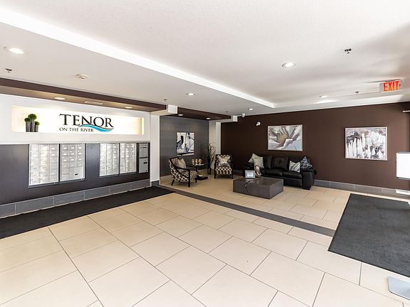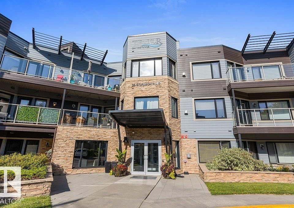 Beauty is in season year-round at The Tenor! This fabulous condo features an open concept design with ultra-modern decor, a spacious kitchen equipped with stainless steel appliances, and an abundance of cupboards. Relax in the Living Room with a cozy feature fireplace or retreat to the oversized Primary Bedroom. Enjoy the convenience of a large Den, in-suite laundry, 9 ft ceilings, and Central A/C. Step outside to your covered balcony with a gas hookup for BBQs! 2 titled underground parking stalls and an assigned storage cage. Building amenities include a state-of-the-art gym, Owners Lounge & an owners balcony with stunning river views, all in a hotel-style lobby. Concrete and steel construction ensure durability, and there's even underground visitor parking for your guests! Located just steps from the Red Willow Trails and Downtown St. Albert, you can enjoy seasonal festivals, shopping, restaurants, and more. Don’t miss out on this incredible opportunity!