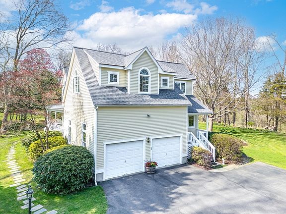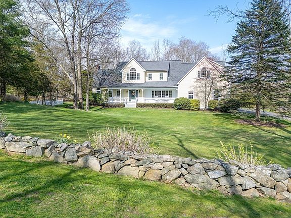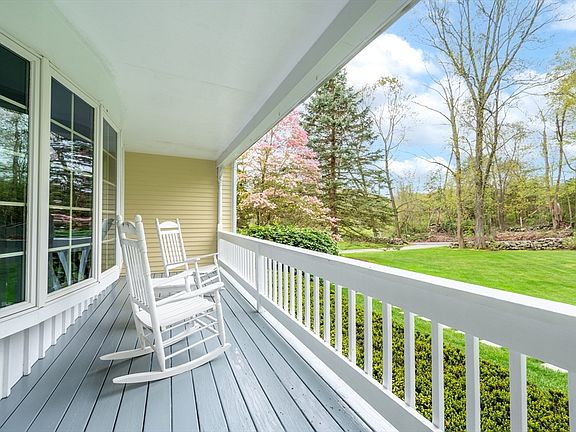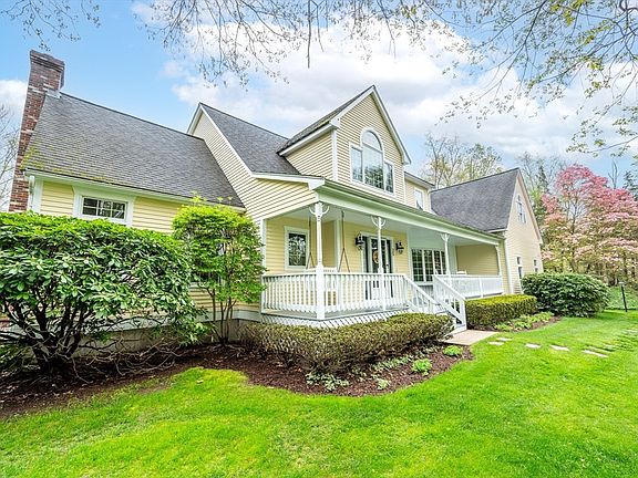 Experience the charm of this custom colonial home. Set on a picturesque 2-acre lot, this residence boasts a farmer's porch and a captivating floor plan, allowing for both space & privacy. The home is flooded w/natural light from the skylights, large palladium windows, & sliders throughout. The kitchen offers cherry cabinets, granite, SS appliances, a bay eating area, and a walk-in pantry. The front-to-back vaulted family room includes a fireplace & opens to four-season sunroom w/ slider to the patio & private backyard. Additional features include a living room with a large bay window, a dining room w/ French doors & tons of storage throughout. The vaulted master suite shines with a huge walk-in closet & a beautiful ensuite bathroom. Three additional large bedrooms (two w/ walk-in closets) & a vaulted study/library complete this stunning home. Extras include AC, irrigation, built-in stereo speakers, & hardwood floors throughout. This home is truly a serene retreat. A must see!