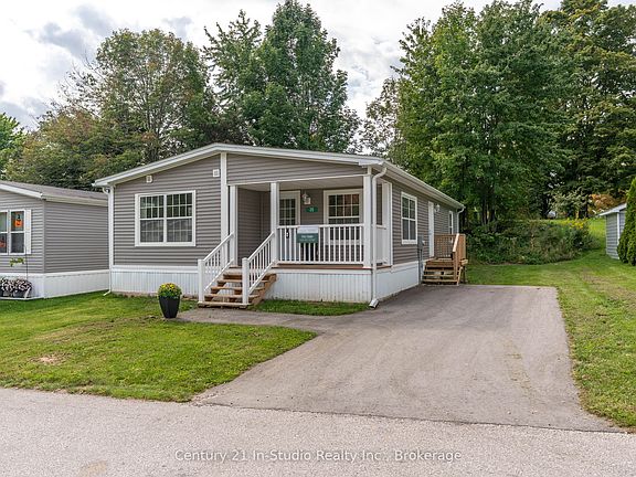 ****End of Summer Promotion - First 3 months of lot fees included with purchase** Are you looking to downsize or for an affordable option to get into the market? This beautiful newly built Modular unit in Stonewyck Estates is in a perfect location just 10 minutes south of Owen Sound, set in a quiet county setting with a family community feel. The interior features a bright, spacious living area, separate dining space and a thoughtful kitchen layout with modern white cabinetry. Continue on to find the primary bedroom with a large window overlooking the view of the back yard, double closets and a spacious 4 piece ensuite bath. Furthermore another well appointed bedroom with ample closets space, a flexible den space to be used as office or bedroom, another 4 piece bath for guests and a dedicated mud room/laundry space off of the side door entrance. Complete with a cozy front porch to enjoy your morning coffee or summer evenings, this home offers an efficient and thoughtful layout providing all the space you need. With an affordable annual land lease fee covering your water, road maintenance and a portion of taxes, this is a great option for low maintenance living! Fees are regularly $700/mnth. Proudly built by Maple Leaf Homes. Contact your REALTOR today for a private viewing, units are available immediately.