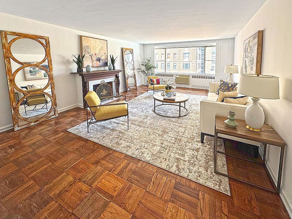This spacious 2-bedroom apartment (convertible-3) with 2.5 baths is the ideal opportunity to enjoy gracious living in a first-class building. There is a very large living room offering sunlit views of Sutton Place and the Queensboro Bridge, and a decorative fireplace. The corner primary bedroom has bright western and southern views, an en-suite bathroom and four closets, including two walk-ins. The second bedroom has a wall of built-in shelves and cabinets, a closet and offers sunny views of the East River and Roosevelt Island. There is a windowed eat-in kitchen plus a separate Dining Room with river views. There are wood floors throughout, a total of nine closets (three of which are walk-ins), and an expansive entrance foyer. In need of some renovation, this is a rare opportunity to create one's perfect home. The installation of a washer/dryer is allowed with Board approval.