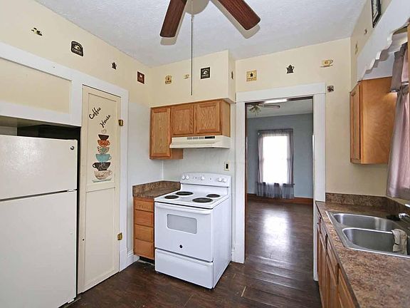 Affordable Story and half home situated on a nice sized lot totaling .469 of an acre, features include 4 bedrooms and a full main level bath, nice sized living room and adjoining dining room, oak cabinet filled kitchen with range and refrigerator, two main level bedrooms plus two bedrooms upstairs, lots of natural woodwork, relaxing covered front porch, natural gas heat, vinyl sided exterior, immediate possession available, priced to sell fast at $120,000.