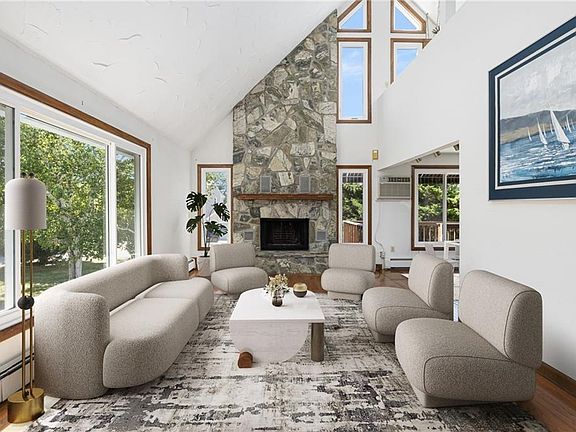 35 Tobin Lane in Ferncliffe Farms is ready for you to make it your own! This contemporary has a terrific layout with a 13 x 20 Great Room featuring a vaulted ceiling with a stone fireplace, hardwood floors, and loads of light. The kitchen is original with oak cabinets and a center island. The dining area leads out to a 10 x 21 deck that is covered by an awning and looks out on a beautiful natural lot owned by the Town of Bristol. The roof is in good condition, as are the hardwoods, and all the windows were replaced just last year. The primary suite is on the second floor along with a 9 x 20 flex space that overlooks the Great Room below and could be an office or another family room. On the lower level is a two-car garage, lavette, laundry room, storage area, and an 11 x 23 Rec Room. Access to the East Bay Bike Path and a right-of-way to the waterfront are just a couple of streets over at the end of Beach Road. Clements' Market is only 1.2 miles away, and the Bristol waterfront, shops, and restaurants are just 2.8 miles away. Offers are due by noon on Wednesday 9/10.