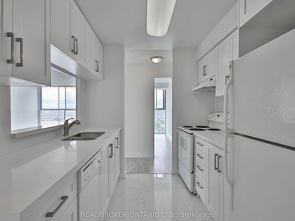 Modern Comfort in the Heart of Mississauga! Welcome to 35 Trailwood Drive a must-see 2-bedroom, 2-bathroom suite offering spacious living at its finest! With nearly 1,000 sq. ft. of beautifully designed space, this bright and inviting unit boasts floor-to-ceiling windows that fill every room with natural light and showcase stunning city views. Enjoy newer laminate flooring throughout and an open-concept layout perfect for entertaining the living and dining areas flow seamlessly into a stylish, eat-in kitchen. The primary bedroom features a generous layout with a private 4-piece ensuite, while the second bedroom is ideal for family, guests, or a home office. Perfectly located in the heart of Mississauga, close to shopping, transit, restaurants, and parks this home is perfect for couples, small families, or anyone looking for space and style in a prime location.