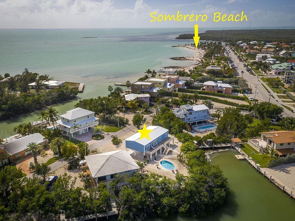 Just 1/4 mile from beautiful Sombrero Beach, this BRAND NEW 4 bedroom home is ideal for BOTH the beach-goer and fishermen with its NEW 40 ft. dock and instant Ocean access location. Return sandy or salty and enjoy a refreshing dip in the paver decked pool. Built to the latest building codes this home boasts hurricane impact windows & doors, durable hardie board siding & a metal roof. The interior is crisp with timeless neutral design and open concept living spaces with a generously proportioned kitchen. Granite counter tops, crown molding and cohesive tile flooring are found throughout. The freshly poured concrete patio under the home provides a great opportunity for shaded outdoor entertainment while still offering plenty of room for covered parking. Desirable Weekly Rental location!
