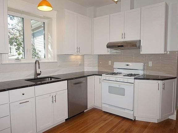 This is what you have been waiting for! The open foyer welcomes you into this updated 3-bedroom/2-bath apartment featuring renovated kitchen with white cabinets andgranite countertops, stainless steel dishwasher, refrigerator and granite top coffee bar area. Spacious living room adjoining a classic board and batten molding dining room. Open floor plan,hardwood fl, high ceilings, beautiful lighting fixtures throughout this home. Quiet4 units AC mini-split system. All bedrooms are good sized with ample closet space. A granite topped washer/dryer in the unit. Heat and hot water included in the rent. No pets and no smokers. Convenient to Green line C, shops and restaurants! Virtual tour is available!