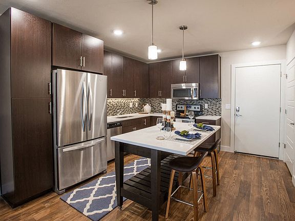 - Exterior features: Concierge, Dramatic 9' Ceilings, Dual Pane, Energy-Efficient Windows, Garden, Health-Club Quality Fitness and Yoga Studio, Individual High-Efficiency Water Heaters, Package Receiving, Spacious Islands with Pendent Lighting, Split Rent Payments with Flex, Studios, 1, 2 and 3 Bedroom Apartments Available, Tech Desks with Charging Stations*