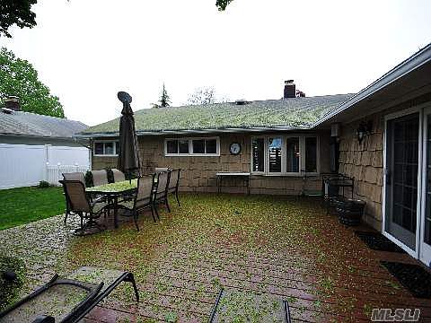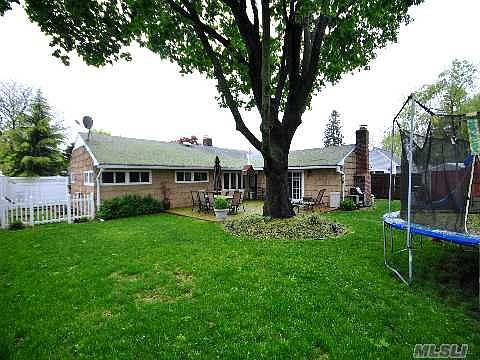 Bet The Ranch On This Updated Home! EIK With Tiled Floor, Wainscoting And Stainless Steel Appliances, Living Room, Dining Room With Wood Floors Throughout And Crown Moldings Oversized Den With Vaulted Ceilings, Woodburning Fireplace With Sliders To A Fenced In Back Yard Emporium And Huge Deck Curb Appeal With Pavers And Walkways And Great Landscaping. In Sought After Syosset SD.