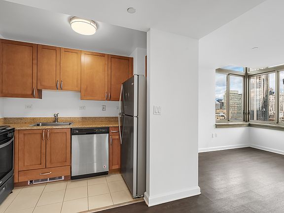 Situated on the corner, this loft-style studio features double-sized windows facing north and west, allowing for an abundant amount of direct sunlight, high ceilings, a separate kitchen with new appliances, central air conditioning and heating, and a spacious living area.