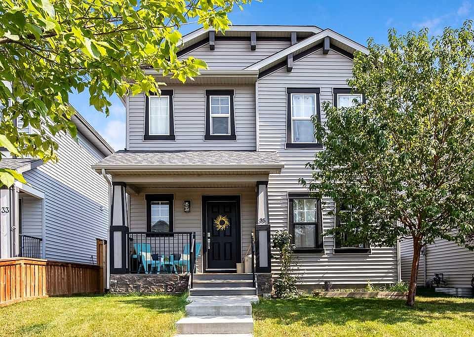 CHARMING DRAKE LANDING two story home with front porch & HUGE YARD, and just STEPS FROM AMAZING WALKING PATHS & POND! If you are looking for a well maintained affordable single-family home with stylish modern finishing, and want an awesome location, then this is it!! MAIN LEVEL features open concept plan perfect for entertaining with cozy living room, kitchen with ss appliances, dining area overlooking backyard, rear mudroom and half bath. Large windows in front and back offer abundant natural light throughout the day. UPPER LEVEL features large primary bedroom with ensuite bath and walk-in closet, and two additional bedrooms with full bathroom. BASEMENT is undeveloped and ready for fourth bedroom and recreation room. HUGE BACK YARD is a private oasis, is fully fenced and has triple gravel parking pad large enough to park your vehicles and toys. CONVENIENT LOCATION near parks, pathways, schools, shopping, amenities, and transportation routes. If you’re looking for a single family charmer under $570K in prime location with the most amazing neighbours, then this is the one!! RECENT UPDATES: fully painted (2023), furnace motor (2023), bathroom taps (2023), north and rear fence replaced (2025)