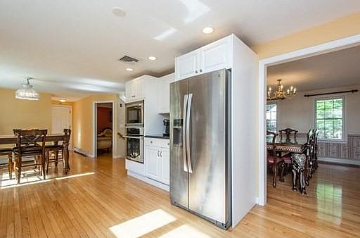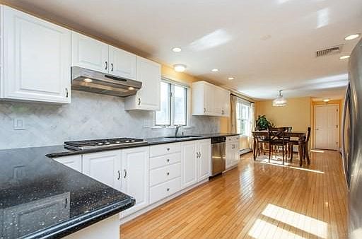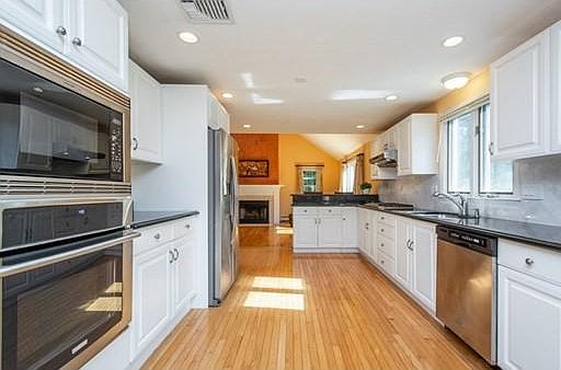 Fall in love w/ this well kept colonial home set off a country road! The beating heart is the updated, white kitchen which visually connects to the entire 1st floor. SS appliances, granite counters, a bar top for seating & a coffee bar. Enjoy casual dining to the side or gather for large occasions in the DR. Formal LR could be closed off for a private office or use the walk out, finished lower level if you need to sneak away for some quiet time; its big enough for a media room & gym! Prodigious family room w/ a fireplace opens to the NEW, expanded composite deck. Enjoy partial lake views and watch the sun rise! HW floors w/ elegant maroon accents carry upstairs where a master suite w/ an updated full bath & walk in closet await. 2 addl BRs w/ double closets & guest bath. Both baths have granite & tiled showers. Town water, sewer AND natural gas. A short drive for convenient amenities: 495, the Pike, shops, grocery stores, the T, Sandy Beach, 2 lakes. Move in before the holidays!