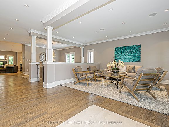 Nestled on a peaceful cul-de-sac, this beautifully updated all-brick bungalow offers exceptional curb appeal with its landscaped gardens, interlock walkway & charming covered front porch. Step inside to a spacious, light-filled foyer with a double-door entry & a walk-in closet. The open-concept main floor is perfect for both everyday living & entertaining. The formal living room boasts elegant crown moulding & a large window overlooking the front yard. The dining room offers a warm & inviting space, perfect for gathering with family & friends. The chef-inspired kitchen is the heart of the home, complete with stainless steel appliances, pot filler, quartz countertops, custom cabinetry, a large island with breakfast bar, pendant lighting & a walkout to the back deck. The adjoining great room features a vaulted ceiling & a cozy double-sided fireplace that can be enjoyed from both indoors & out. A powder room is conveniently located off the main living area. The serene primary bedroom retreat features a vaulted ceiling, his & hers closets- one of which is a walk-in & a spa-like 4 piece ensuite with a freestanding tub & a glass-enclosed shower with rain showerhead and a handheld. Two additional bedrooms feature pot lights, ceiling fans, closets and share a stylish 4 piece bathroom. The laundry/mudroom is thoughtfully designed with custom cabinetry, quartz countertops, a built-in bench with hooks & direct access to the double car garage. Beautiful hardwood floors run throughout the main level. California shutters adorn this home enhancing both style & privacy. A built-in sound system adds an extra touch of luxury. The partially finished basement offers a 4th bedroom & a large utility/storage area. The expansive unfinished space offers endless possibilities. Step outside to your private backyard with a spacious 2-tiered deck with a fireplace, gas BBQ hookup & plenty of room for outdoor entertaining & relaxation. See attachment for list of updates.