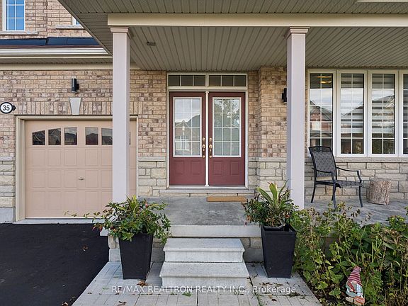 Welcome to 35 Webb Trail - a beautifully finished, all-brick home ideally situated on a quiet street and one of the most premium lots in the area. This solid, well-built residence enjoys a sunny south-facing backyard and backs onto a lush, treed greenbelt, offering exceptional privacy and picture-perfect views throughout the day.Spanning 2,902 sq. ft., the home welcomes you with a double-door entry and extended front porch that leads into a bright, open foyer. The family room features large, picture-perfect windows with unobstructed views, a coffered ceiling, and a gas fireplace, creating a warm and inviting centerpiece for your home. The open-concept kitchen is designed for both daily living and entertaining, featuring a large quartz island, ample cabinetry, and a thoughtful layout that flows seamlessly into the main living areas. The main floor also offers a dedicated office, a separate dining room, and a mudroom with direct access to the garage. A well-designed staircase with a comfortable landing connects the main level to the upper floor, balancing style and functionality.The primary bedroom faces south, filling the space with abundant natural light and offering dreamy views of the trees and forest-a perfect retreat for peace and privacy. The home features four generously sized bedrooms, each with ample closet space, including three large walk-in closets, along with three full bathrooms and a convenient second-floor laundry room.Step outside to a large, private backyard with no neighbours behind-the ultimate reason to enjoy living away from the city. This is a unique opportunity-meticulously maintained, thoughtfully designed, and ready for you to make it your forever home. Don't miss it!
