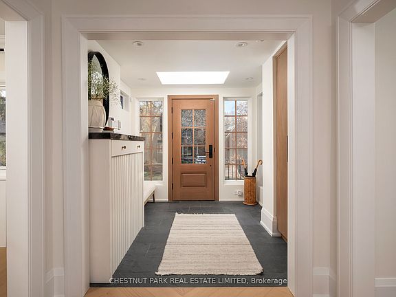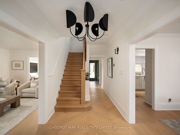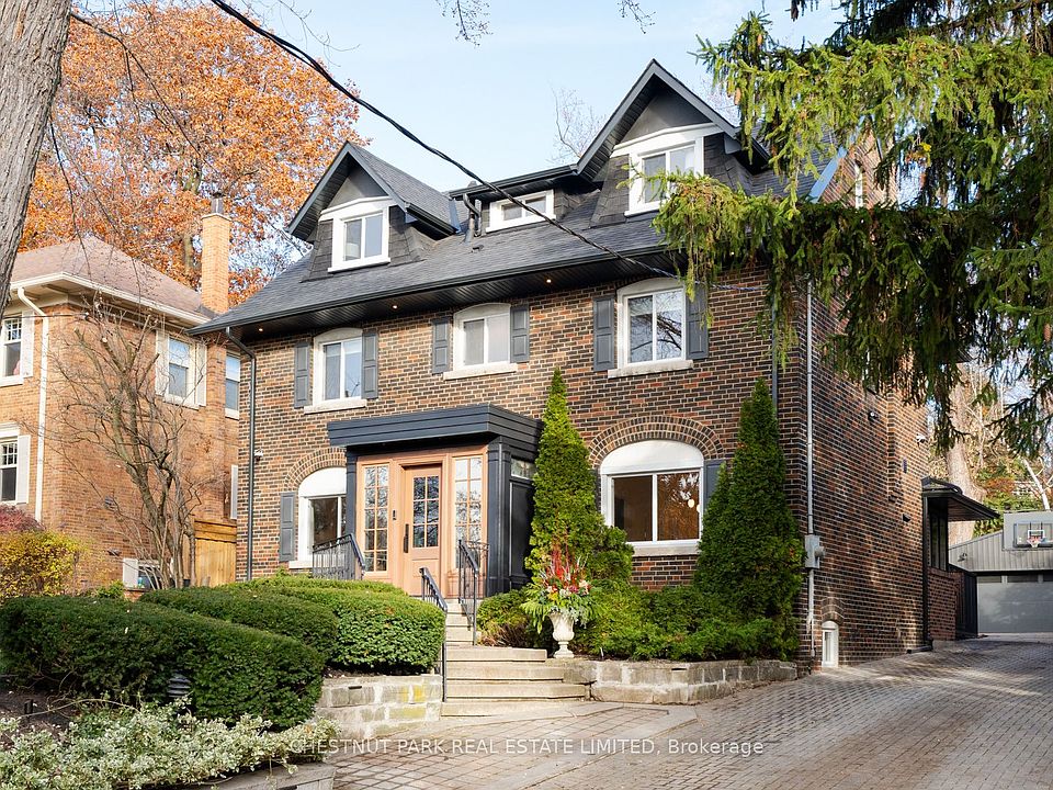 On the most coveted stretch of Weybourne Crescent, stands this Georgian home that feels lifted straight from the pages of Architectural Digest. Its presence is unmistakable: a manicured front garden frames the warm brick façade, enriched by symmetry, a detailed portico, a solid wood centre-hall door with glass inlays, and charming dormers that give the home its elegant, inviting personality. Inside, the story unfolds with a foyer finished in heated natural stone, a panelled oak-wood closet, and a skylight that fills the space with natural light. To the right, the formal dining room glows beneath a designer chandelier and flows seamlessly into the sun-filled kitchen with brand new panelled Fridge/Freezer, Dishwasher and built in oven, where refined finishes and a window-wrapped breakfast nook overlook the private backyard. Across the centre hall, the living room offers timeless charm with a gas fireplace, opening into a designer family room featuring a custom media wall, arched built-in, a dramatic skylight, and floor-to-ceiling windows framing the backyard oasis. Engineered white oak floors, pot lights, and integrated speakers elevate the entire main level. The second floor hosts a serene primary suite with a 5PC ensuite and walk-in closet, along with 2 additional bedrooms and a laundry closet. The third floor has two bright bedrooms with built-ins, adding rare architectural character. The lower level extends the home with two versatile rooms, a modern bath, a large laundry room, and a spotless utility space. Outdoor living shines with landscape lighting, smart irrigation, outdoor speakers, and rare parking for up to 9 cars, including a 2-car detached garage behind a remote-controlled gate. Steps to parks, the Lawrence Park Tennis Club, and close to Granite Club & Rosedale Golf Club, an easy walk to Yonge Street, Subway Station, and top schools, this home offers a lifestyle of charm, character, and modern family luxury on one of Toronto's most admired streets.
