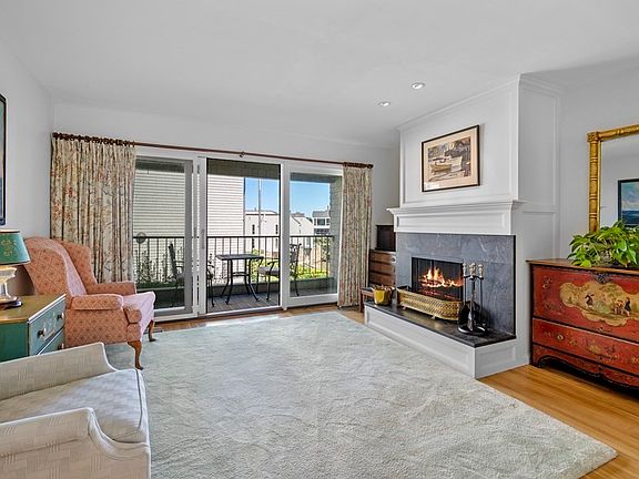 Rare offering at the highly regarded "Glover Landing" Harborfront condominium complex. First floor, RENOVATED, two-bedroom, one full bath FLAT!! This unit boasts fabulous sunlight, gleaming hardwood floors, carpeted bedrooms, one full bath with easy access shower, and a custom picture window which frames the view of the iconic Marblehead Lighthouse. Covered deck offers great privacy while gazing at the harbor and association private sandy beach below. Chefs' kitchen with stainless appliances and granite counter tops surround the expansive storage and custom cabinetry. Recessed lighting accent the handcrafted wood burning fireplace mantle. This exceptional condo also has one car assigned parking; additional parking can be potentially rented from the association. On site management provides extremely high level of client service. Walking distance to Historic Marblehead and the areas vast amenities.