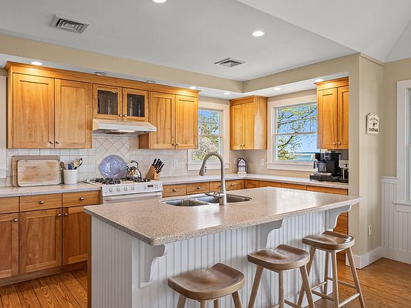Discover this beautiful 3-bedroom, 3.5-bath home nestled amongst lovely properties in North Chatham only 370ft from the Ocean. The thoughtfully designed reverse floor plan captures stunning views of Pleasant Bay, complemented by refreshing breezes. Enjoy the convenience of central AC, gas heat, a fireplace for cozy evenings, and a private irrigation well to maintain the level lot. Imagine the possibilities with the large basement, perfect for future expansion. After a day at nearby Scatteree or Cotchpinicut beaches, rinse off in the outdoor shower. Offered furnished and with a proven rental track record, this is an exceptional opportunity to own your piece of Chatham.