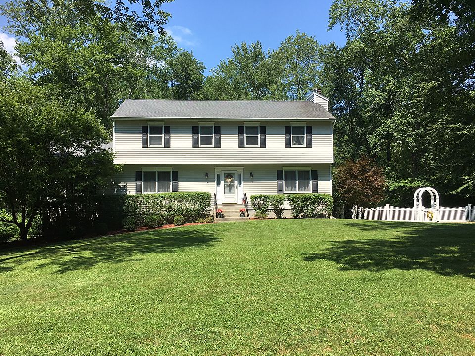 New Listing! Low taxes! Quiet cul de sac location. Move right in! Very bright and sunny 4 bedroom Colonial on 2 acres, updated eat-in kitchen with sliders out to deck. Updated 2 1/2 baths. 2 fireplaces. Hardwood floors throughout. Walk-in closet in Master bedroom. Wonderful Family room with high ceilings and sliders out to deck. Beautiful level property. Wonderful for entertaining. Exterior of house painted 2015. New driveway, 2014 and 2 car garage is oversized. School bus stop in front of house!
