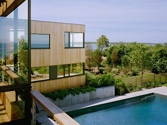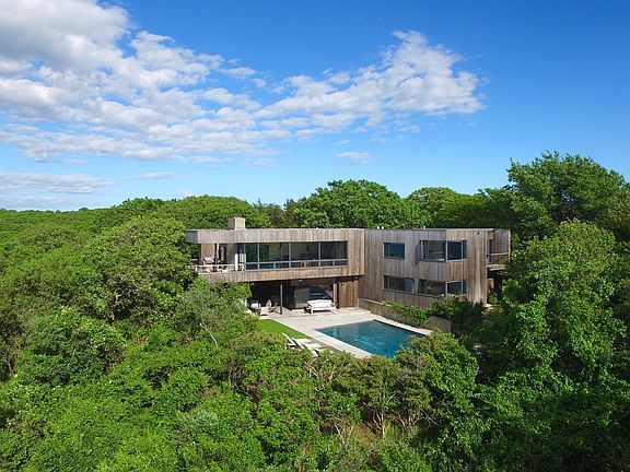 Rental Registration #: 19-287 This spectacular 4 bedroom, 3 bath modernist home is located in one of the most desirable waterfront settings in Montauk, bordering 174 acres of nature preserve. Perfectly perched atop a gentle bluff to take advantage of forever sunset and waterviews overlooking Culloden Point, Block Island Sound and beyond. This rare, one-of-a-kind home, designed by architect Robert Young has been featured in numerous shelter publications. The well-appointed main living space includes an open floor plan with chef's kitchen, living/dining area with custom fireplace and walls of glass to provide glorious water views. The living area opens to the deck, perfect for dining, entertaining and watching the sailboats drift by. The large first level family room leads to an outdoor covered living space with fireplace, generous gunite pool, sunny lounging areas and access to the quiet beach on Fort Pond Bay.