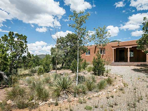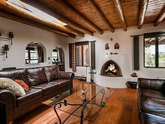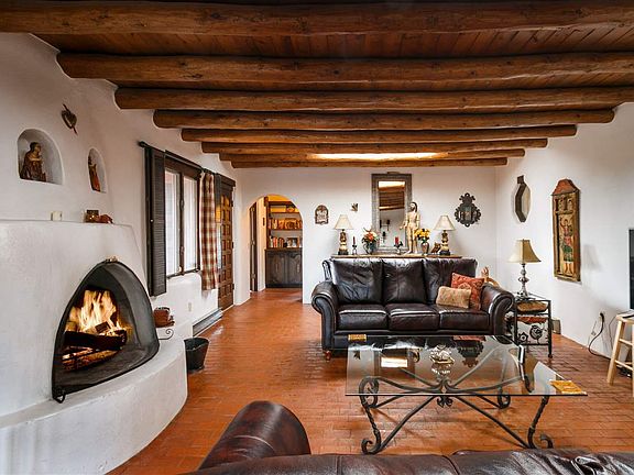 This rustic three bedroom, adobe home is well sited on 4 acres; with four custom kiva fireplaces, vigas, brick floors and all the traditional Santa Fe style. The property is great for someone who needs space to add a workshop (NO HOA), and likes a rustic setting off a dirt road. A retreat from the center of the city that allows for seclusion, while still being close to all the necessary amenities.