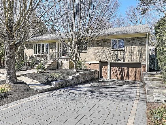 Enjoy one level living in this outstanding 1969 ranch style home beautifully located on a private 9600 sq ft lot on a quiet street off the Blvd. Thoughtfully reconfigured and renovated by the current owner to provide a bright and open layout with abundant natural light and hardwood floors throughout. The impressive living room offers a stunning barrel ceiling and a handsome fireplace with a new stainless surround flanked by built-in bookcases, and flows seamlessly into the formal dining area which is completely open to a superb cook's kitchen with white cabinetry, ample quartz counters, stainless appliances, and a wonderful center island with a unique custom wooden top. The open flow continues into the spectacular sunroom addition done in 2020 featuring a cathedral ceiling, a skylight, large windows all around, and an atrium door out to a small deck overlooking the patio and meticulously landscaped Zen garden. The fabulous primary suite provides a large walk-in closet and a gorgeous marble luxury bath with a large glass-enclosed shower. A second bedroom with direct access to the other full bathroom and a laundry area completes the main level. An open staircase with a chairlift goes down to the lower level, which has a convenient integral 2-car garage, a workshop, and a possible in-law apartment including a family room with a brick fireplace, a kitchenette, and a full bathroom. Updated mechanicals including central air-conditioning. Totally pristine and move-in ready!