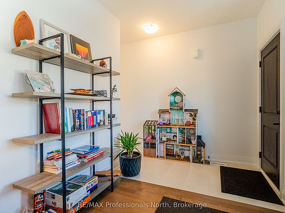 Discover refined living in this executive two-storey residence, beautifully crafted in the prestigious Woodstream community, built by award winning Tarion builder Devonleigh Homes. This lovingly cared for home blends modern design, timeless comfort, and exceptional convenience in one of Huntsville's most desirable locations. Ideally situated just minutes from Huntsville Hospital, Spruce Glen Public School, Arrowhead Provincial Park, upscale and convenient shopping, and fine dining, Woodstream also offers its own private sports court and children's park area for a rare combination of neighbourhood charm and elevated lifestyle. The main level features a formal front den, perfect for a home office or library, and a spacious open-concept living and dining area anchored by an elegant gas fireplace. The kitchen is designed for both style and function, with granite counter tops and is ideal for hosting or enjoying everyday family living. A discreet powder room and double attached garage add further convenience. Leading upstairs, are beautifully upgraded solid oak stairs, and then a plush carpeted upper landing that lead to the luxurious primary suite, which offers a walk-in closet and spa-inspired ensuite. Two additional bedrooms, a well-appointed full bathroom, and a dedicated laundry room complete the second level, with a total of 2.5 bathrooms throughout the home. The full walkout basement provides abundant natural light and limitless potential for a future recreation space, fitness studio, or guest suite. This is a rare opportunity to own a newly built executive home in a vibrant yet private Huntsville community, where lifestyle, location, and luxury meet. All that is left is to design your outdoor space, and really make it yours! Book your showing today!