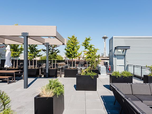- Exterior features: Balcony, Controlled Access/Gated, Floor-to-ceiling windows, Pet Park, Quartz countertops, Resident Rewards Program, Spacious closets, Steps to Olympic Sculpture Park & Space Needle, TV Lounge, Tile backsplash, Welcoming two-story lobby