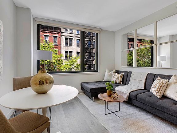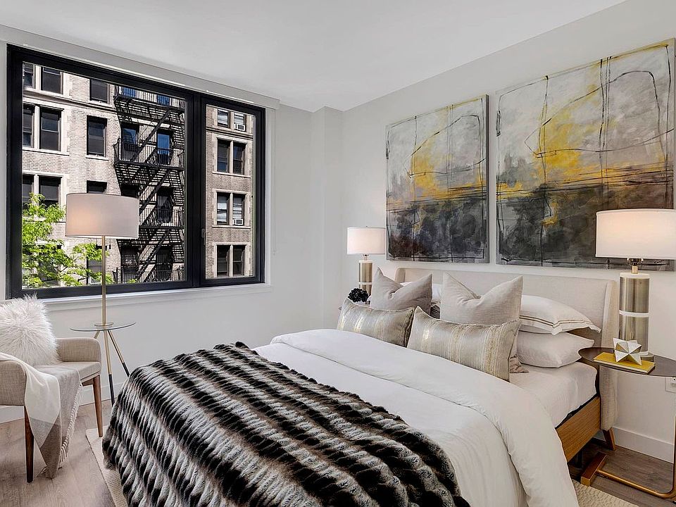 Introducing The Nyles - enveloped by iconic Midtown West. No detail was spared in this pristine new development where sprawling sutton oak flooring, oversized windows providing ample sunlight, and modern floor plans with open living rooms allow for seamless entertaining. The open chef's kitchen features condo-like finishes such as glistening white mist quartz counters, custom walnut soft-close cabinetry, and chrome Grohe Minta kitchen sink, all fitted amongst a suite of GE stainless steel appliances like a built-in microwave, dishwasher, and five-burner gas stove with double griddle, plus a Haier refrigerator with LED lighting and freezer drawer. In addition, each bedroom accommodates a full size bed or larger and includes generous closets.